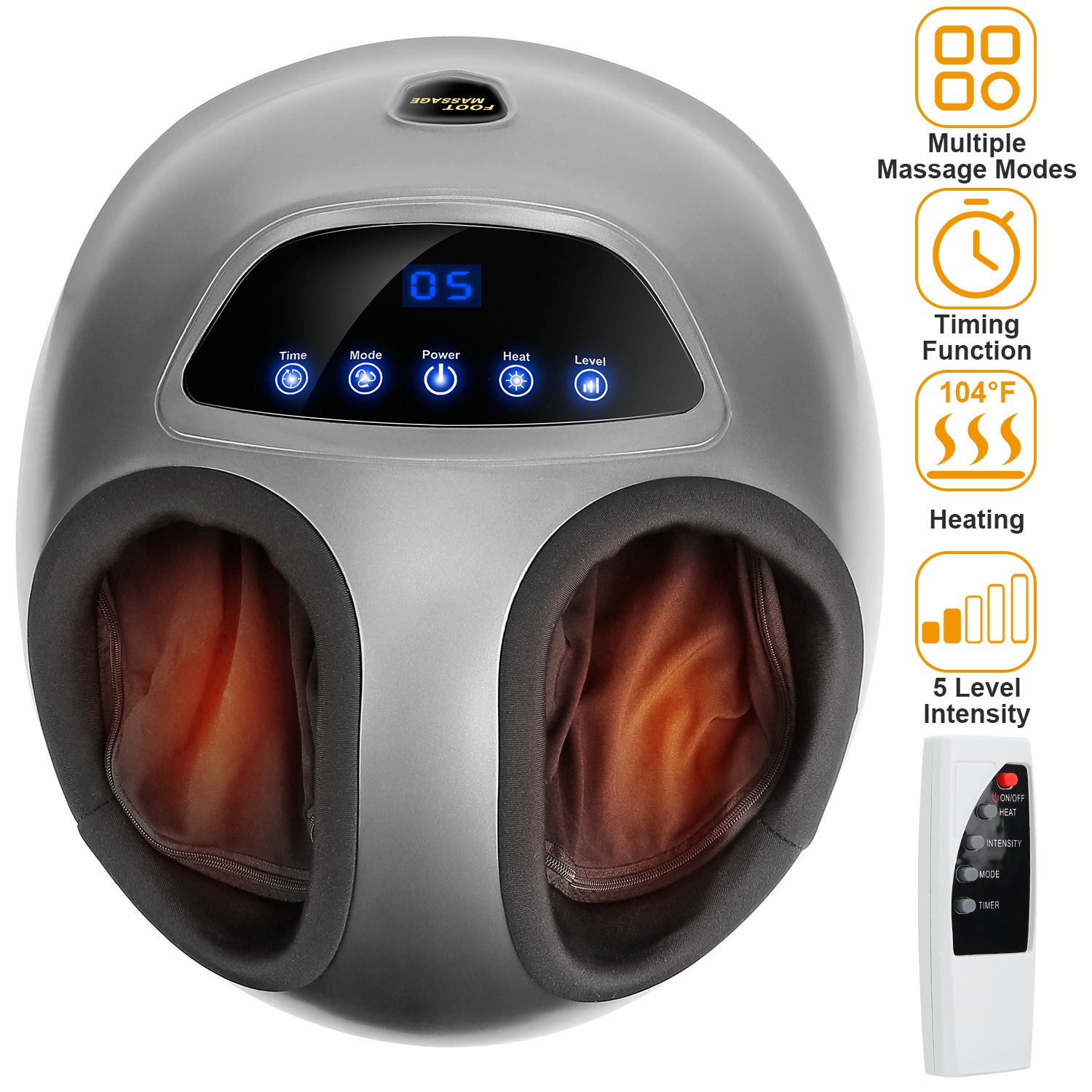 Our foot massager is especially perfect for women in high heels, workers who need to stand for long periods, and the seniors who are easy to suffer from poor blood circulation. Our foot massage is beneficial to you combat the daily discomfort. Come with 3 massage modes with optional heat therapy, time setting and 5-level intensity adjustment, remote control, simple control the foot massage unit and enjoy comfortable massage experience. An ideal gift for your friends, parent, etc..