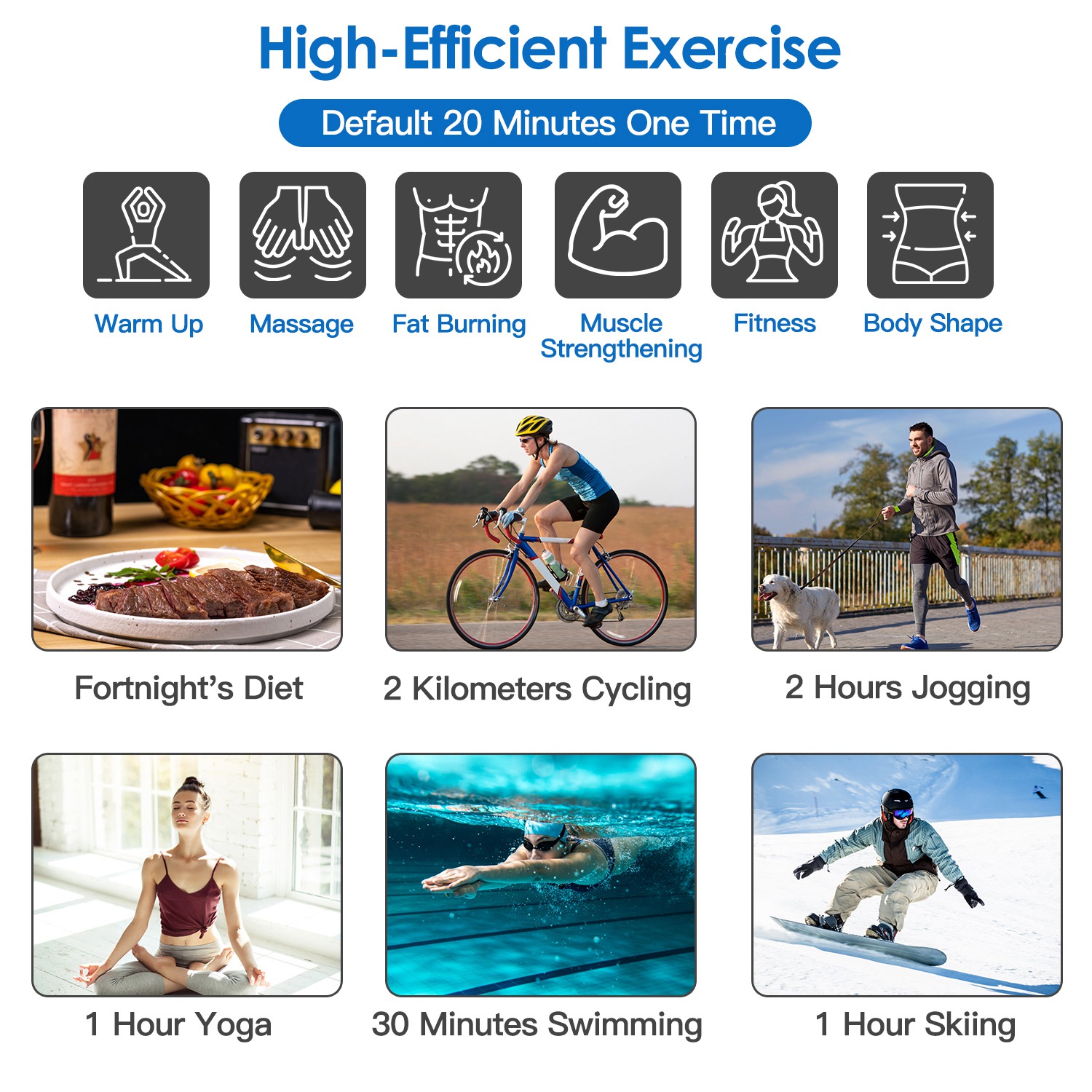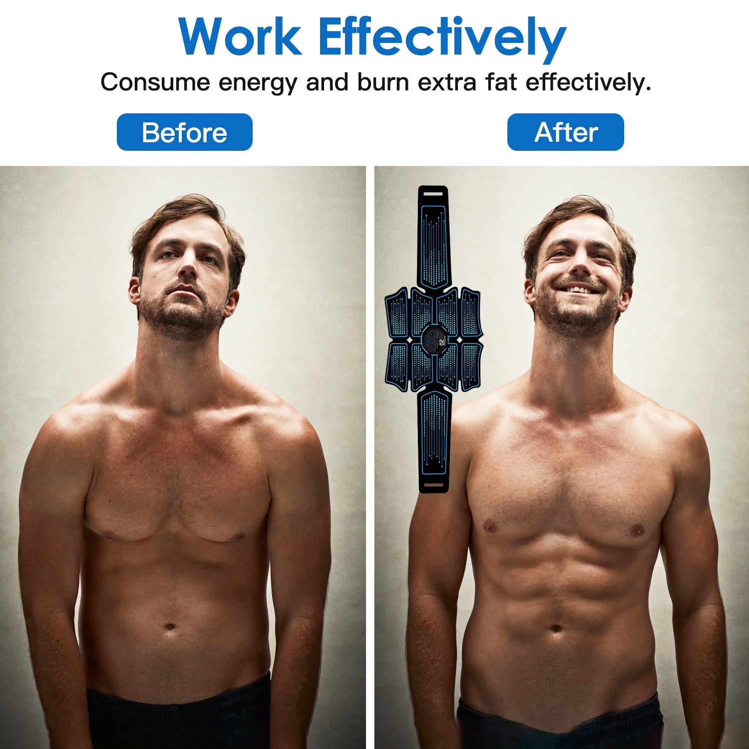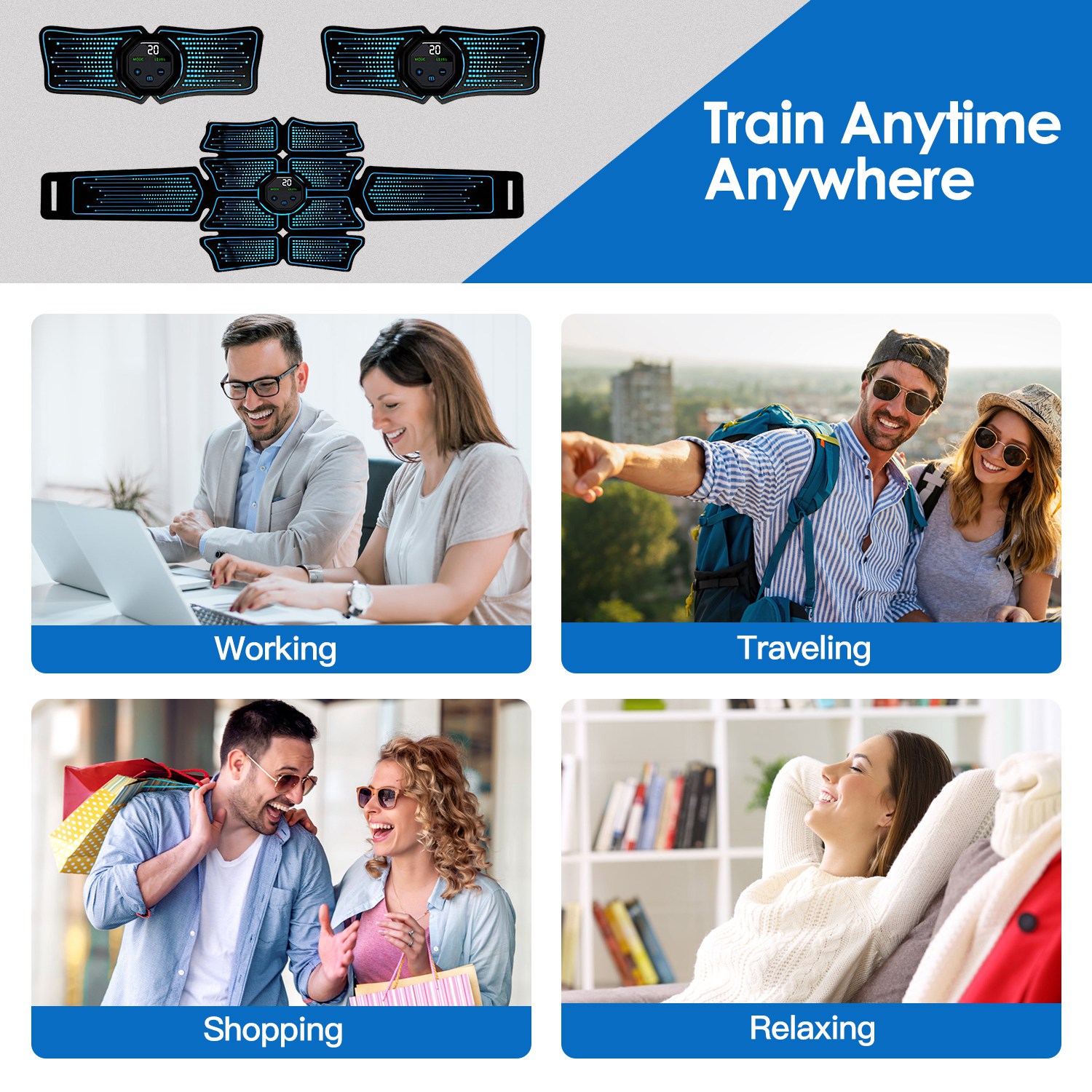 The muscle stimulator is specially designed to consume energy and burn extra fat by stimulating the muscle nerves, transmitting pulse signals to the muscles, and promoting the muscles to complete the contraction movement, so that you will get slimmer and stronger. No more long hours in the Gym, and you are going to see good results in no more than 3 months! You can choose 10 modes and 20-level intensity to fit your needs. Just apply the abdomen belt on your abs and put the two arm belts on your arm, leg, hip, etc. to start using. You can exercise your muscles while reading, doing household chores, in the gym, during business or leisure trips. Take it home and go for your 8-Pack Abs Muscle!